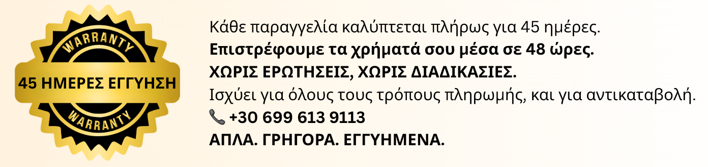 ✦ Επιστροφή χρημάτων μετρητά ή τραπεζική μεταφορά εντός 48 ωρών.