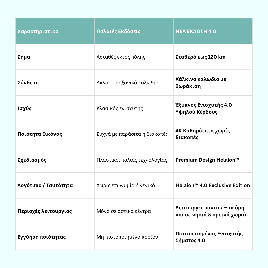 Η Helaion 4.0 προσφέρει καθαρή εικόνα ακόμα και σε περιοχές με αδύναμο σήμα, χωρίς διακοπές ή θόρυβο.